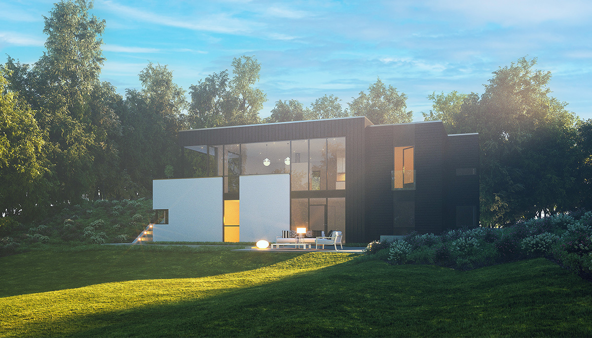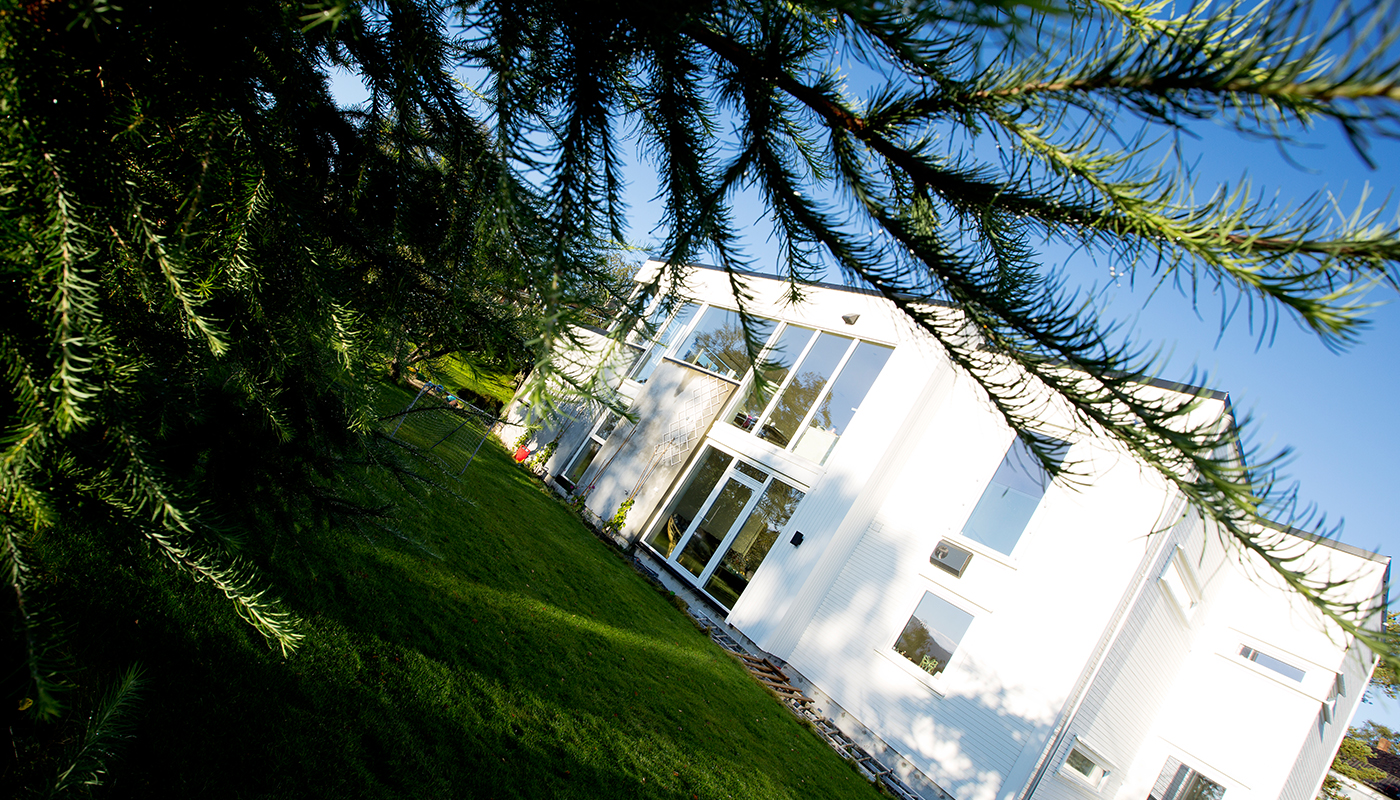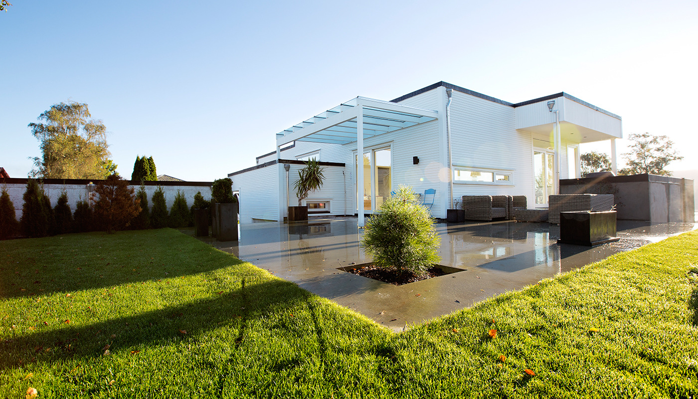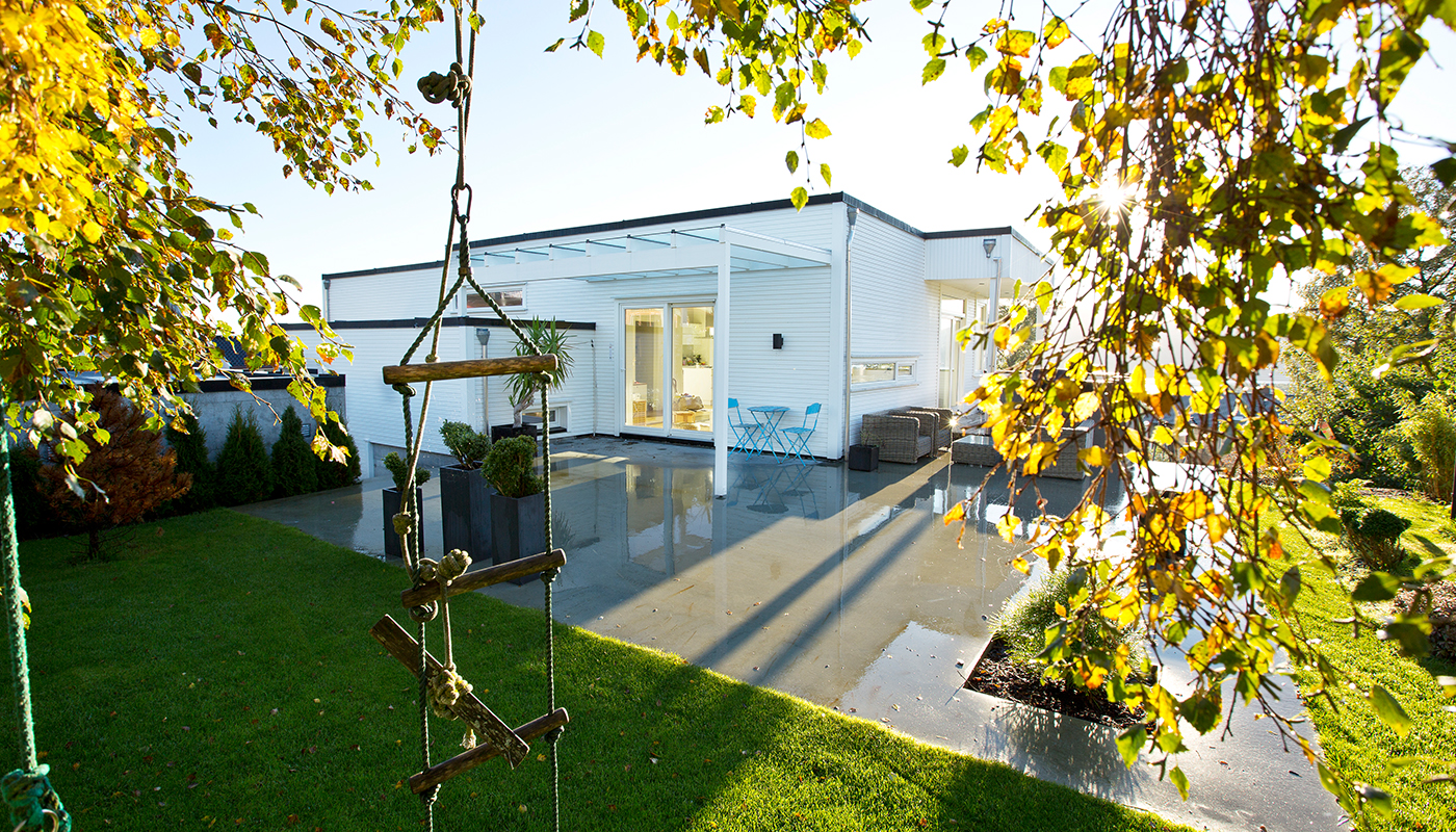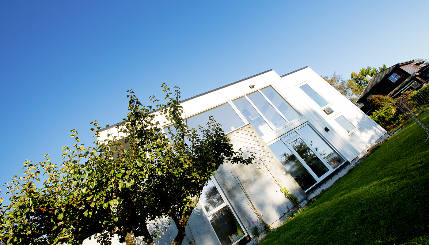 Huset passer på skrå tomt.